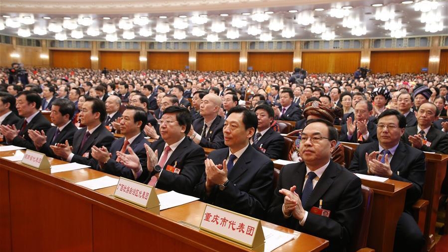 3月17日,十三届全国人大一次会议在北京人民大会堂举行第五次全体会议。