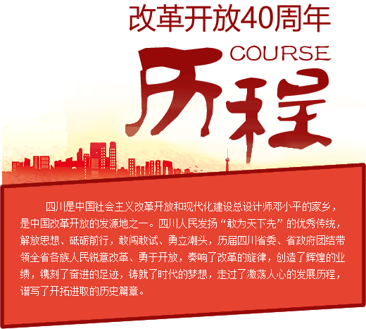 四川为啥会誉为中国改革开放的发源地之一,并不仅仅是因为四川是邓小平的家乡,而是因为四川在过去40年的改革开放历程中书写出了辉煌的四川篇章,引领了中国改革开放的进程,贡献出了中国改革开放的四川智慧与四川力量。【详细】
