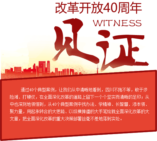40年的发展历程,记录着四川勇于变革、勇于创新的历史。对于四川来说,改革开放是“接地气”的,每一座地区、每一处乡村、每一个家庭所发生的巨变,都能成为中国改革开放的缩影,成为群众获得感、幸福感、安全感大幅提升的“代表作”。【详细】