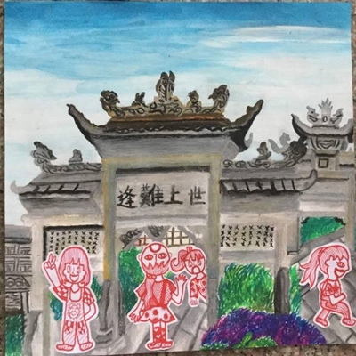 这组画表现的是孩子们在“三古之旅”途中快乐嬉戏的场景。