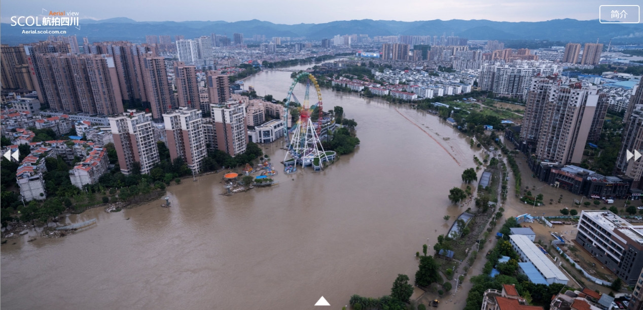 8月17日,受强降雨影响,沱江干流三皇庙水文站过境洪峰流量达8100立方米/秒,为史上第二大洪峰。川报全媒体出动直升机,联合省防指、成都应急对沱江流域进行空中巡查,亿像素记录汛情实况。