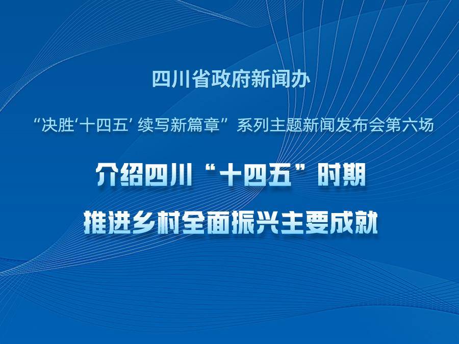 2025年10月23日(星期四)15:00,省政府新闻办将在四川新闻发布厅举行“决胜‘十四五’ 续写新篇章”系列主题新闻发布会第六场,省委农办主任、农业农村厅厅长蒋刚围绕四川“十四五”时期推进乡村全面振兴主要成就作介绍并答记者问,省发展改革委、人力资源社会保障厅、生态环境厅、住房城乡建设厅有关负责人参加答记者问。四川在线将全程图文直播,敬请关注!