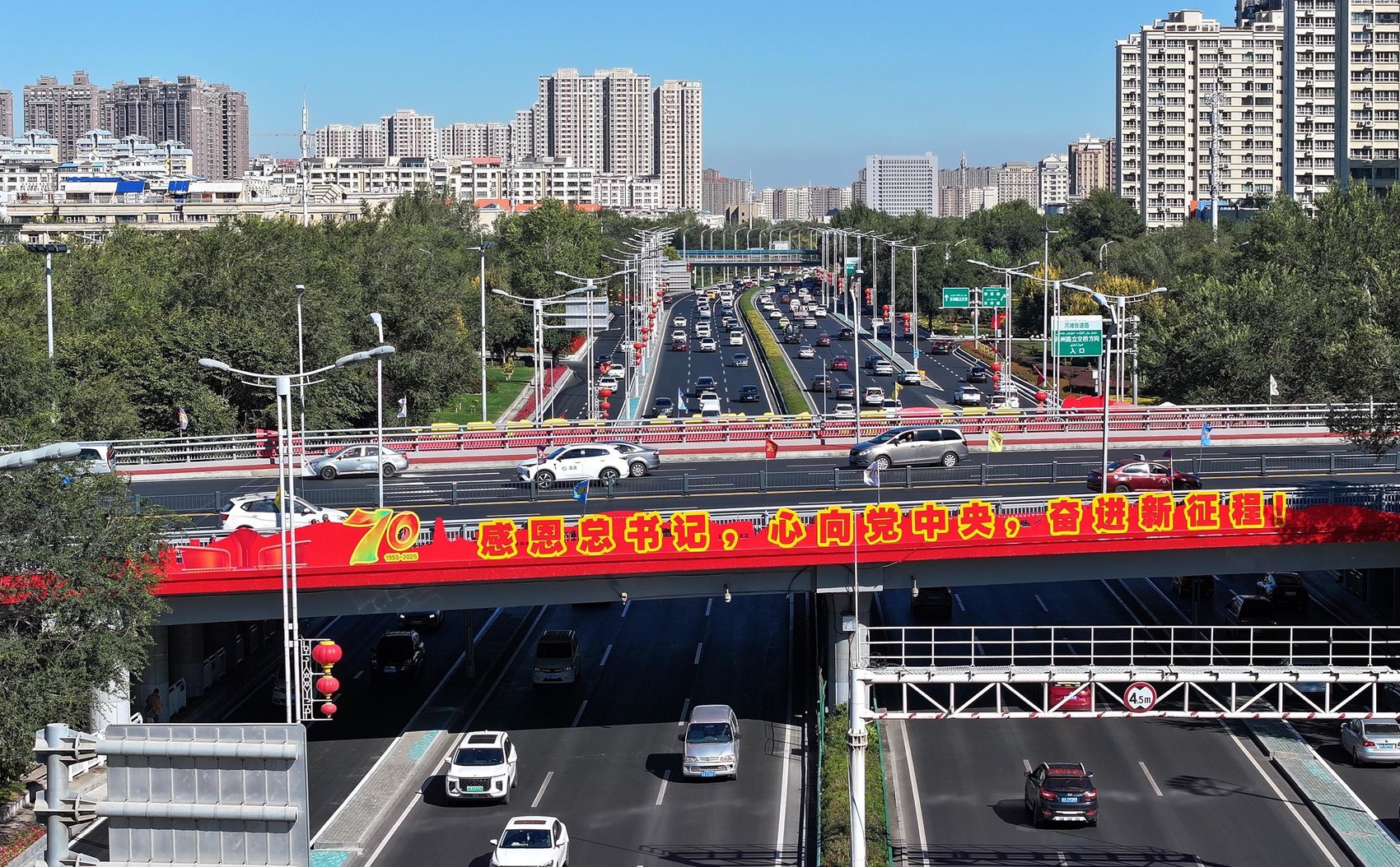 △乌鲁木齐街景 新疆70年的沧桑巨变,是中华民族伟大复兴历史进程的一个生动缩影。新时代以来,在以习近平同志为核心的党中央坚强领导下、在全国人民大力支持下,新疆各族人民团结一心、艰苦奋斗,同全国各地一道如期全面建成小康社会、迈上全面建设社会主义现代化国家新征程。 此次在新疆,习近平总书记寄语大家:“凝心聚力、久久为功,努力建设团结和谐、繁荣富裕、文明进步、安居乐业、生态良好的社会主义现代化新疆。” 站在新的历史起点,2600多万天山儿女牢记总书记的殷殷期许,心相通、志相同、力相聚,为实现中华民族伟大复兴的中国梦谱写壮丽的新疆篇章! |