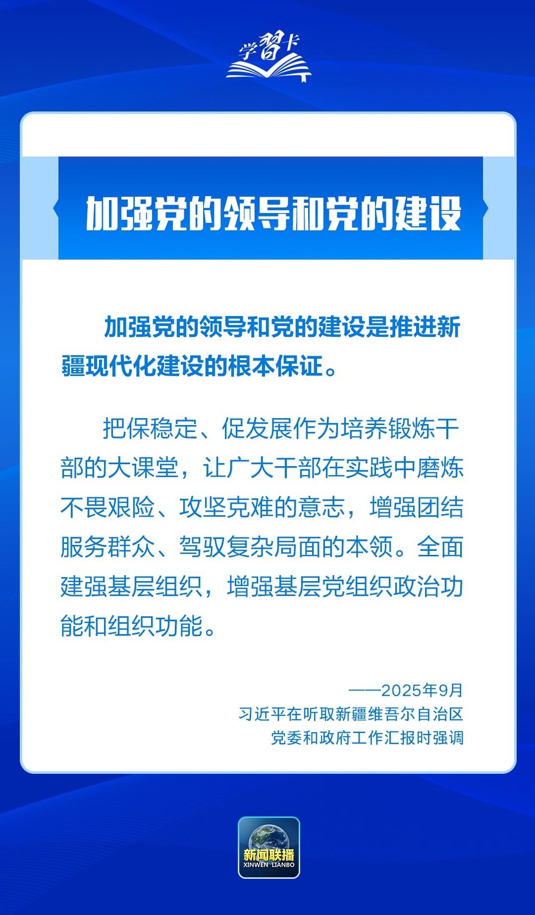 24日,习近平在听取新疆维吾尔自治区党委和政府工作汇报时强调,新疆要完整准确全面贯彻新时代党的治疆方略,锚定中央赋予的“五大战略定位”(亚欧黄金通道和向西开放的桥头堡、构建新发展格局的战略支点、全国能源资源战略保障基地、全国优质农牧产品重要供给基地、维护国家地缘安全的战略屏障),努力建设团结和谐、繁荣富裕、文明进步、安居乐业、生态良好的社会主义现代化新疆。