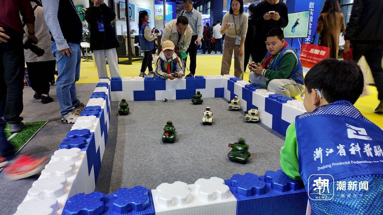 孩子们正在操控迷你机器人。潮新闻记者 邹宸 摄