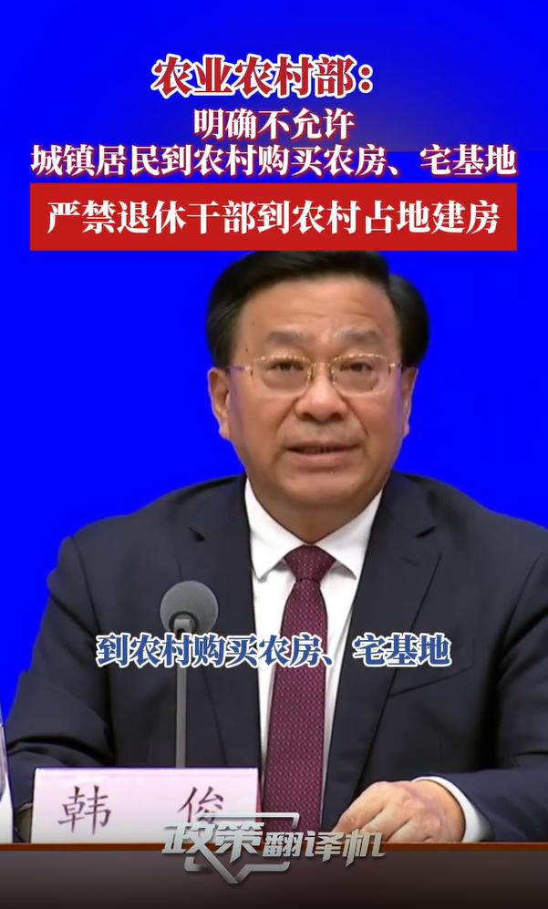 9月16日,国务院新闻办公室举行新闻发布会,介绍“十四五”时期农业农村发展成就。农业农村部部长韩俊在会上表示,不允许城镇居民到农村购买农房、宅基地,严禁退休干部到农村占地建房。明确农民可以依法将合法拥有的闲置住房通过出租、入股、合作等方式盘活利用。这些政策的初衷都是为了更好地维护农民的土地和财产权益。