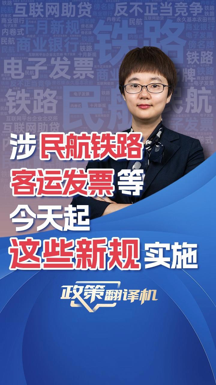 铁路、民航10月1日起全面使用电子发票;新办法守住永久基本农田保护红线;新修订的反不正当竞争法规制“全网最低价”等网络不正当竞争行为……十月新规来了,@政策翻译机 为你翻一翻,哪些与我们生活相关。
