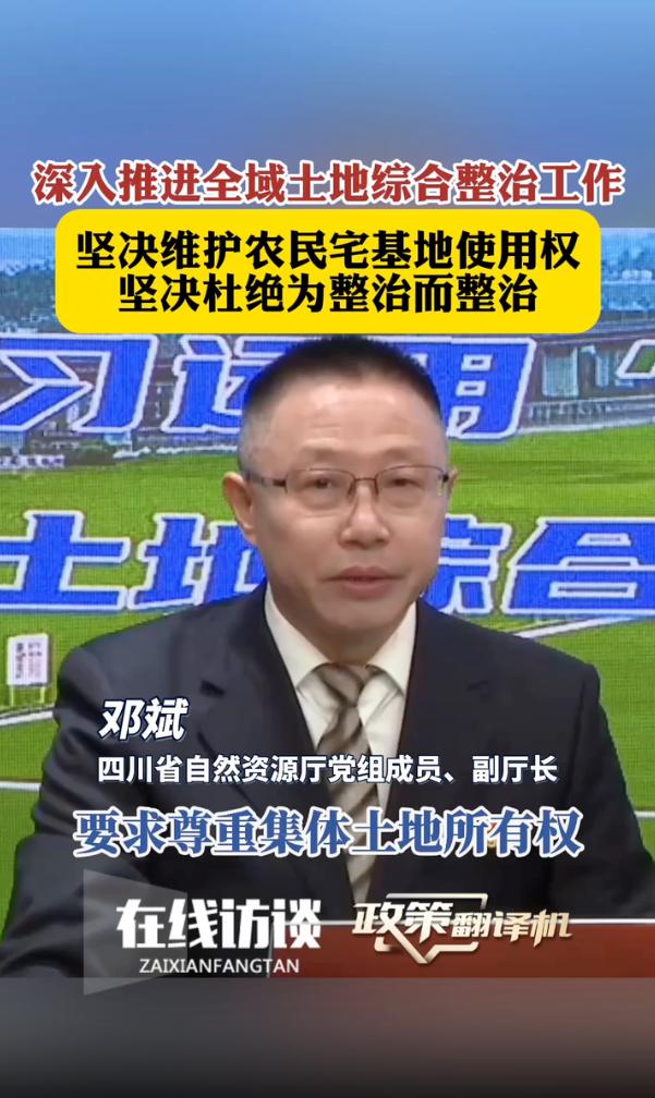 11月5日,四川省自然资源厅党组成员、副厅长邓斌介绍《关于学习运用“千万工程”经验 深入推进全域土地综合整治工作的实施意见》,其中提到,深入推进全域土地综合整治工作,要求坚决维护农民宅基地使用权等不动产权利,坚决杜绝为整治而整治、片面追求指标交易、损害农民利益等行为。政策翻译机为你解读。