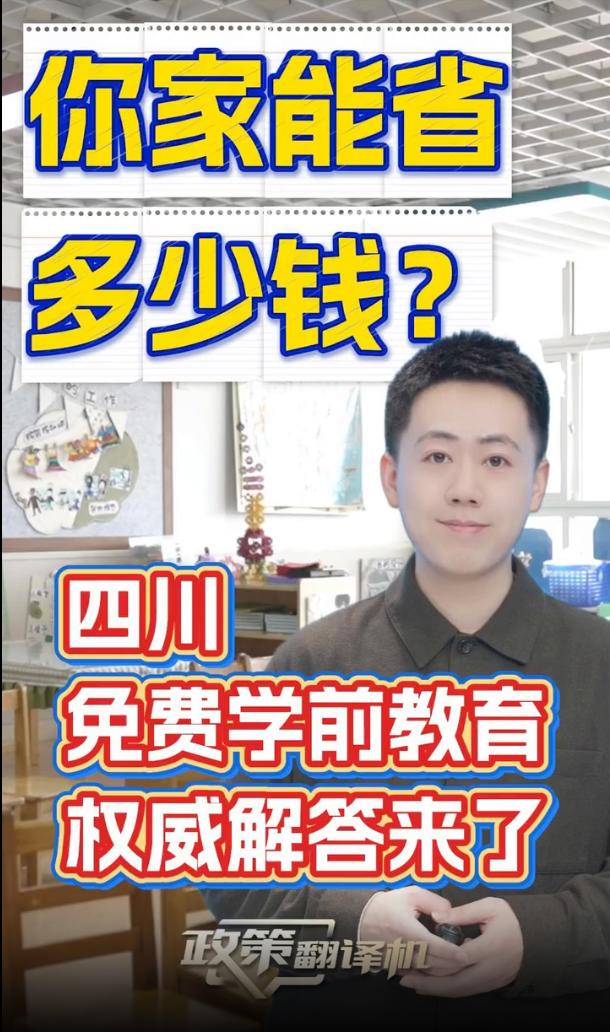 家里有娃的注意!《四川省逐步推行免费学前教育实施方案》日前印发,从2025年秋季学期起,四川开始逐步免除学前教育保育教育费。哪些娃能享受?究竟能给家长省多少钱?和政策翻译机一起算算。