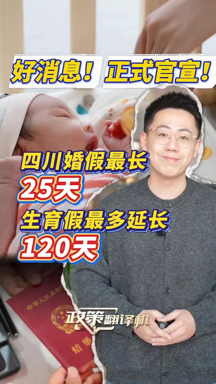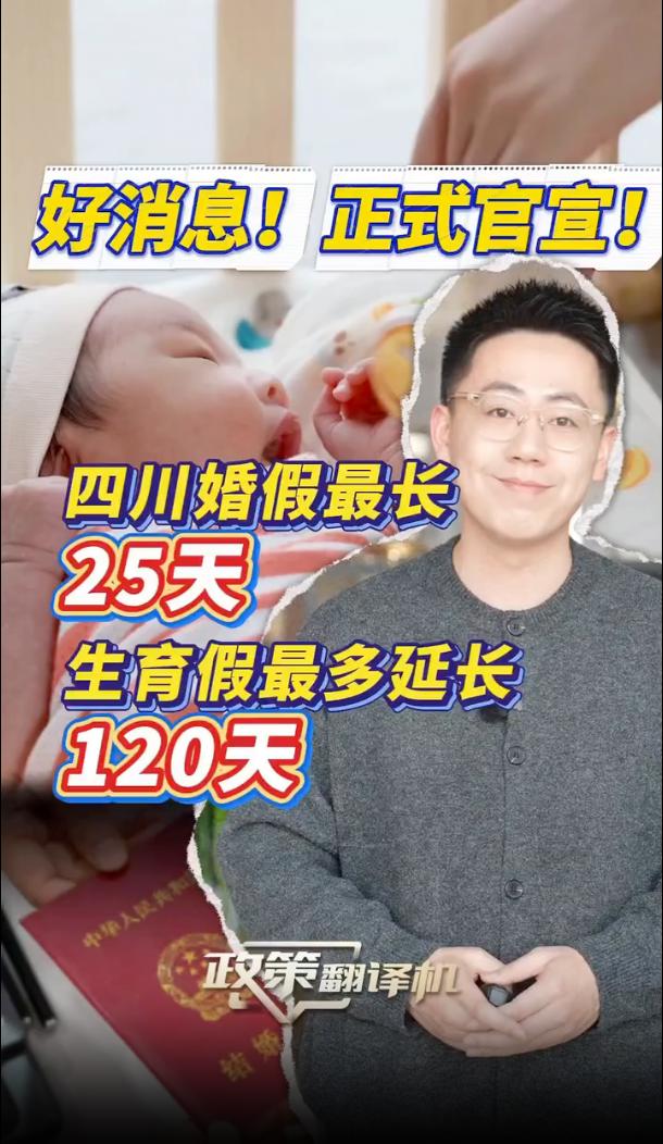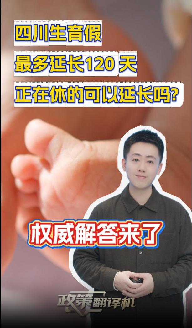 新《四川省人口与计划生育条例》来啦!四川生育假有新变化,最长延长120天。那正在休生育假的可以延长假期吗?刚休完的可以补假吗?政策翻译机 这就为你解答,转给身边需要的朋友~