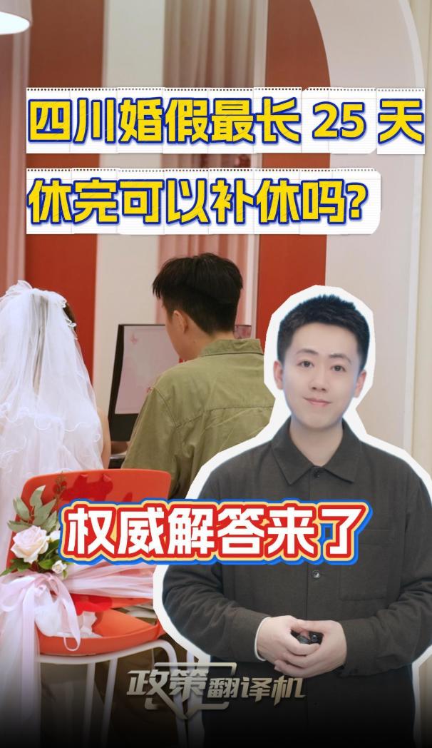 新《四川省人口与计划生育条例》来啦!四川婚假有新变化,最长可以休25天。那婚假已经休完了还能补吗?可以分段休吗?再婚可以休吗?你关心的问题,都有答案了,快跟政策翻译机 一起看看,转给身边需要的朋友~