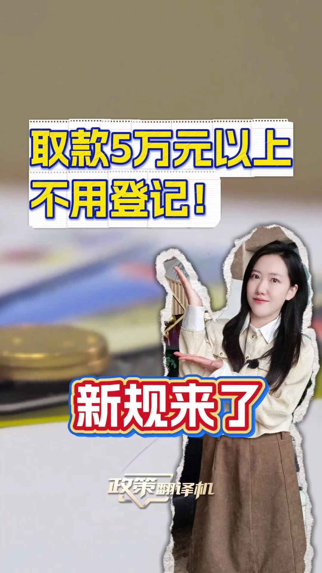 中国人民银行等三部门近日联合发布管理办法,其中“个人存取现金超5万元需登记资金来源”的规定被取消了。具体有哪些变化,政策翻译机带你看看。