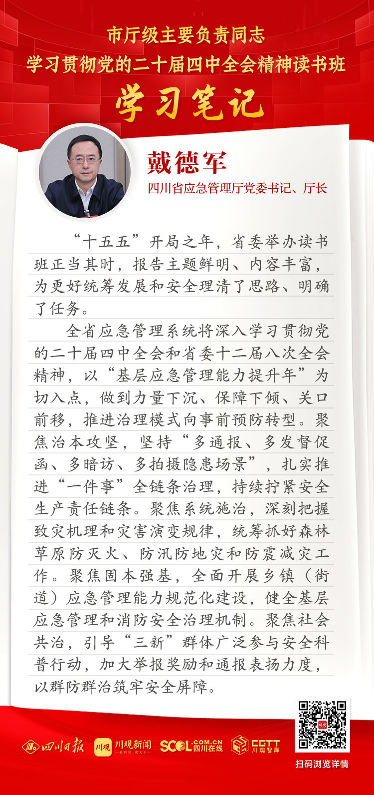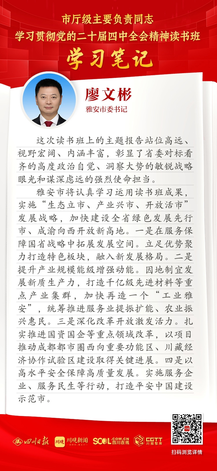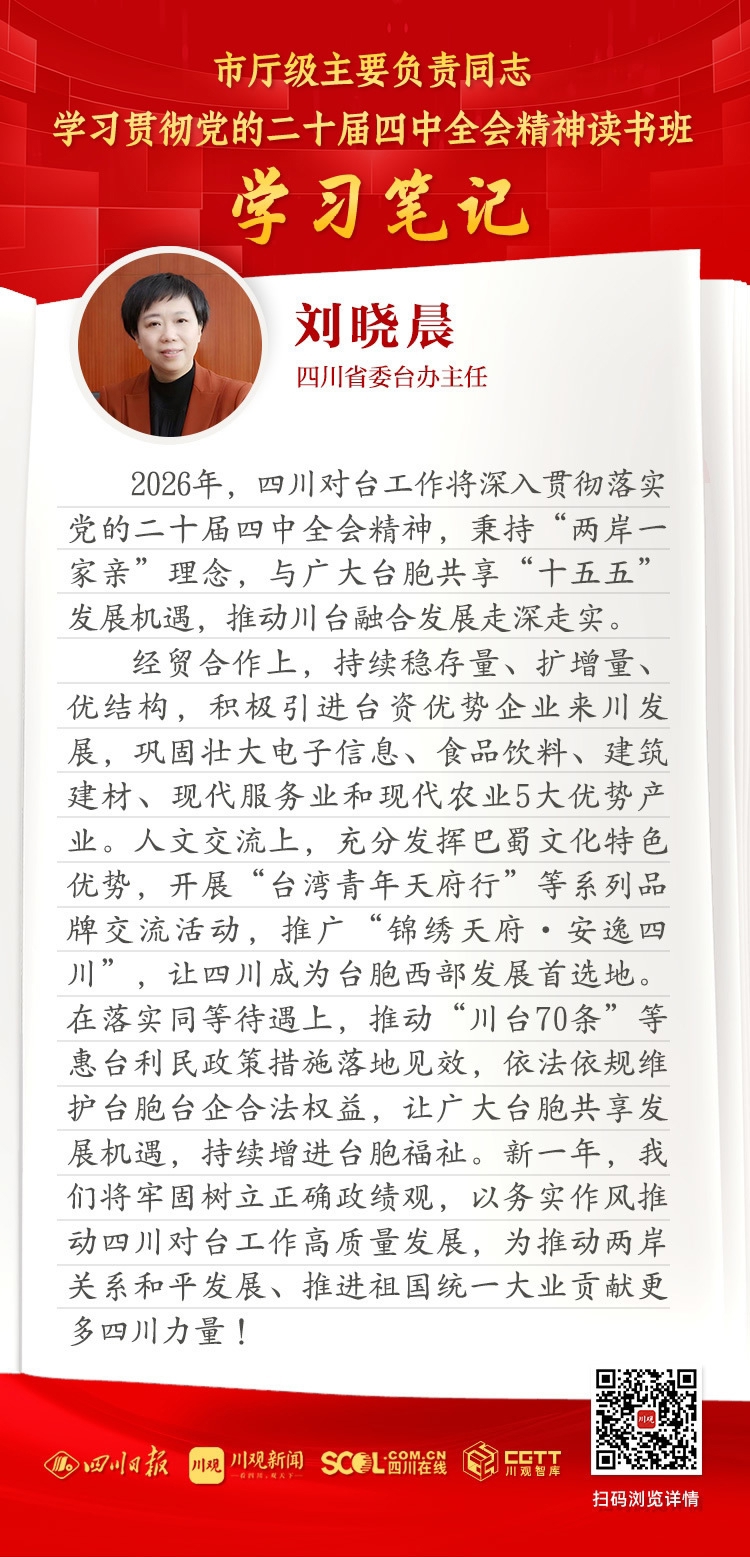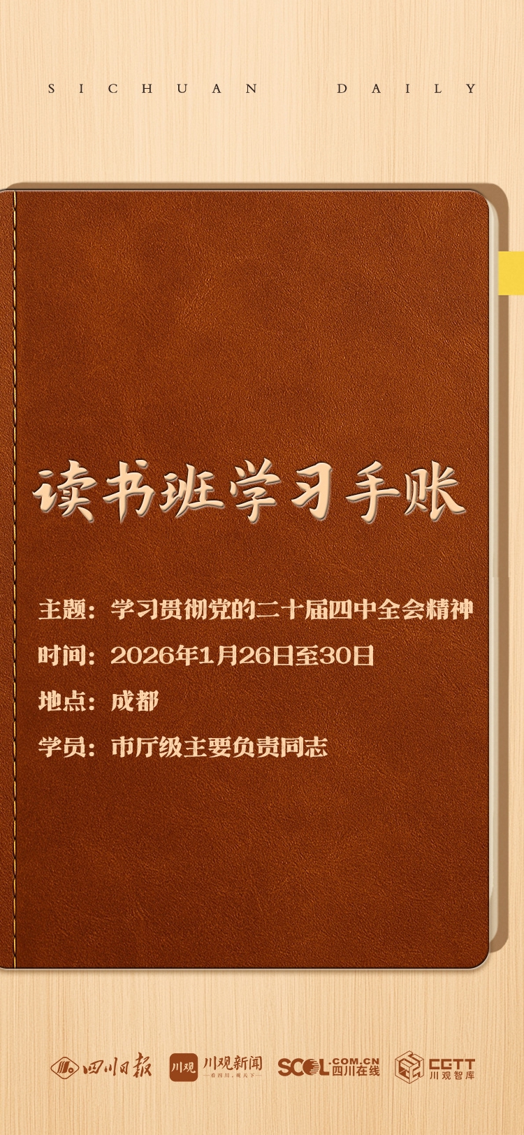 1月26日至30日,市厅级主要负责同志学习贯彻党的二十届四中全会精神读书班在成都举行,省委书记王晓晖出席开班式并作主题报告。
