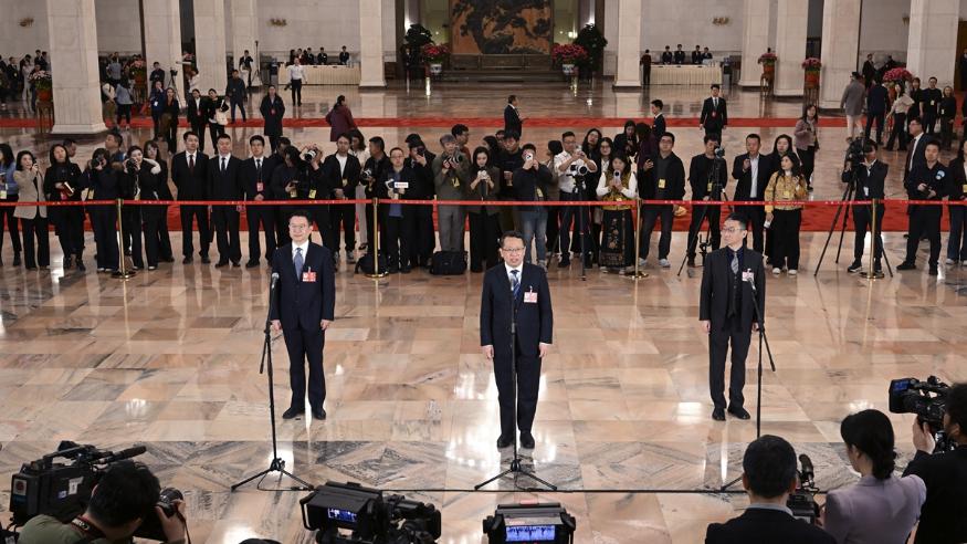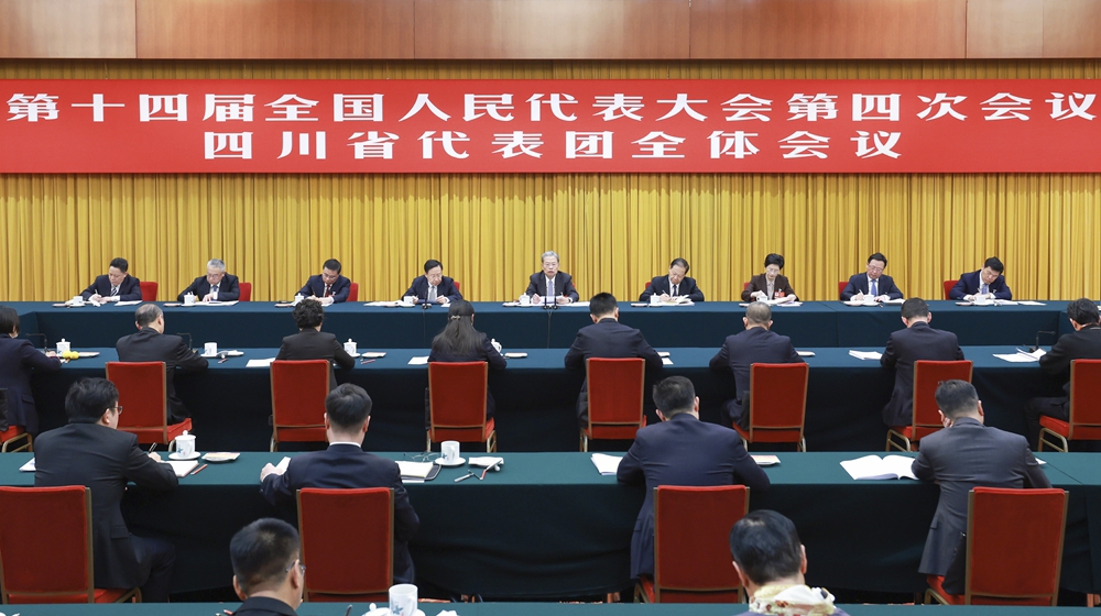3月11日上午,十四届全国人大四次会议四川代表团在驻地举行全体会议,继续审议全国人大常委会工作报告、最高人民法院工作报告和最高人民检察院工作报告。