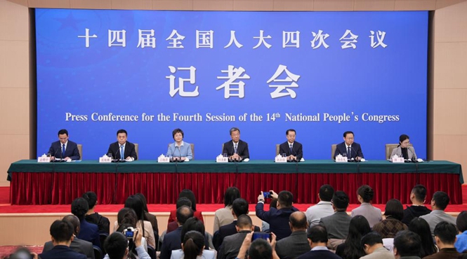 3月12日,十四届全国人大四次会议第三场“部长通道”在人民大会堂举行,自然资源部部长关志鸥接受记者采访。
