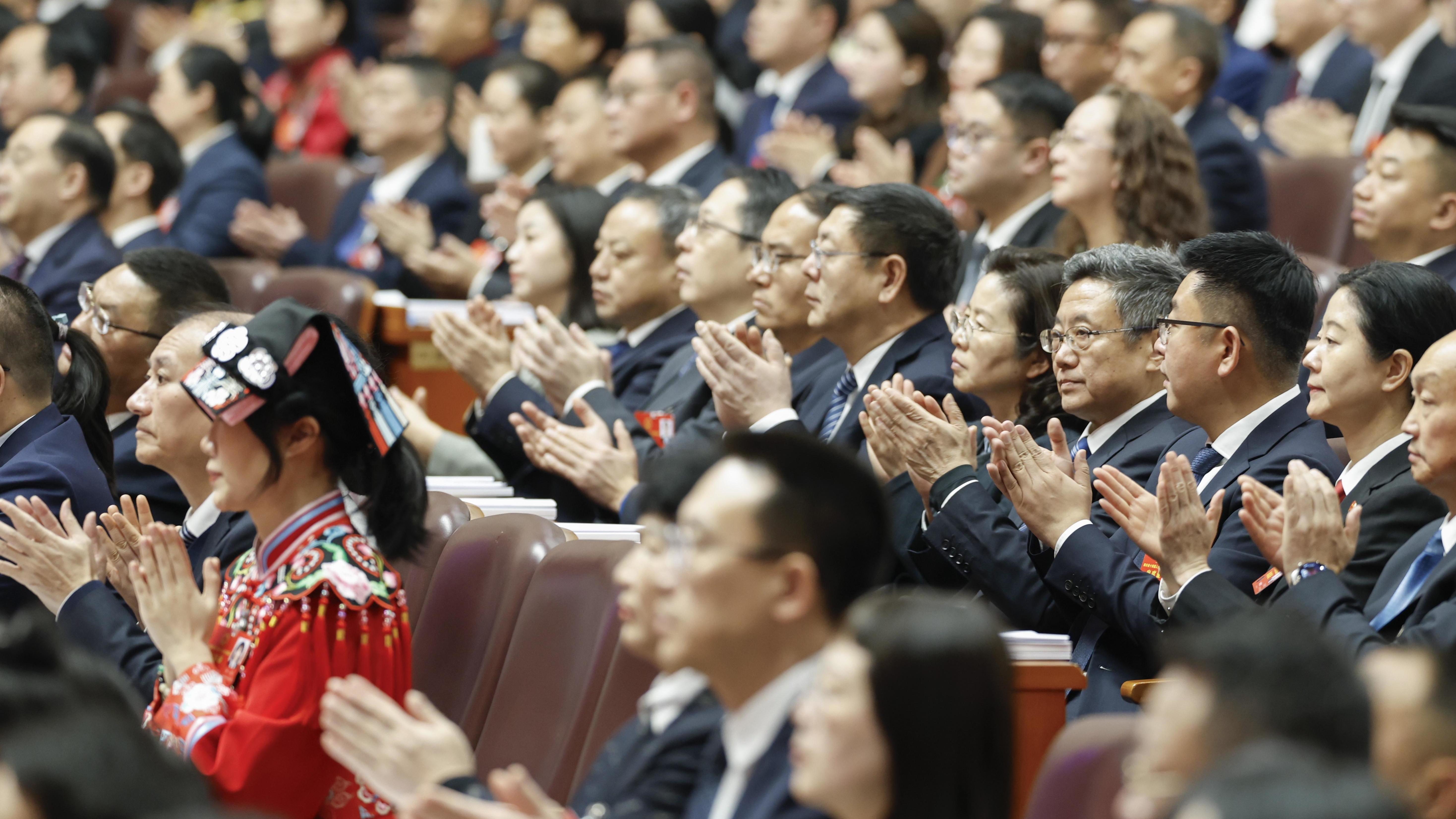 省十四届人大五次会议举行第二次全体会议 王晓晖施小琳田向利于立军出席