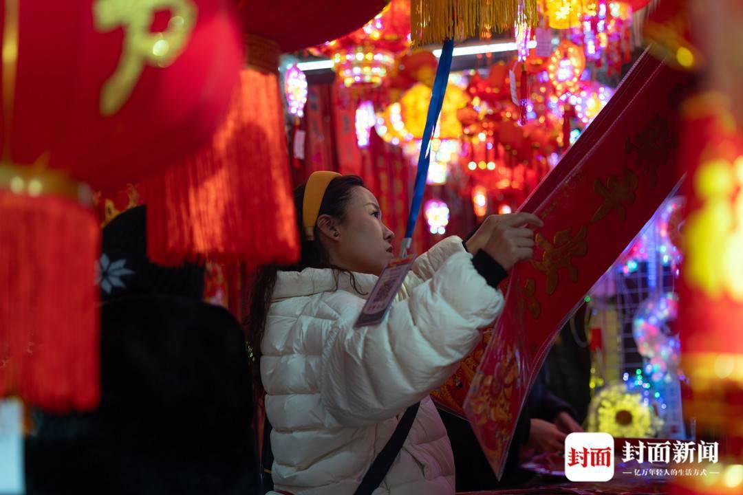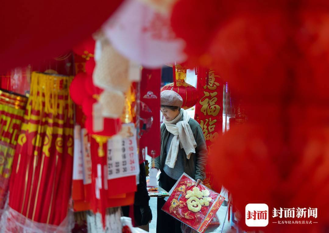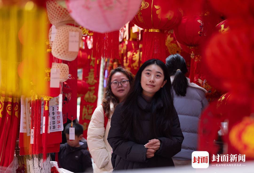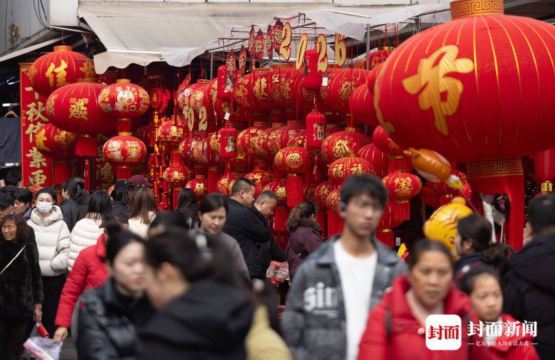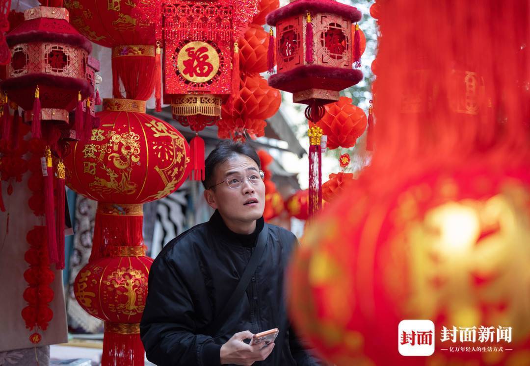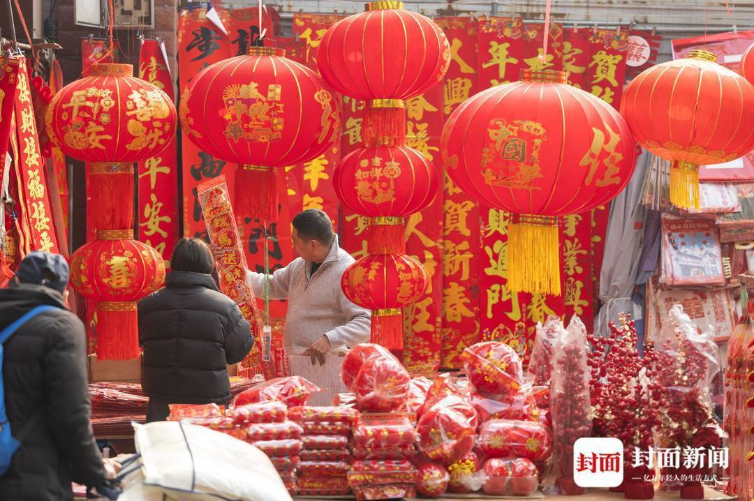 红灯笼、中国结等传统节日饰品挂满商铺,红彤彤的颜色映照在路人的脸上,在成都荷花池小商品批发市场,出售节庆饰品的商店成了市场里最耀眼的一抹红。2月4日,封面新闻记者在荷花池小商品批发市场看到,从传统的对联福字,到新颖的电子灯笼,各种春节年货应有尽有。红红火火的节日氛围吸引了不少市民前来选购年货、打卡拍照,体验浓浓年味。